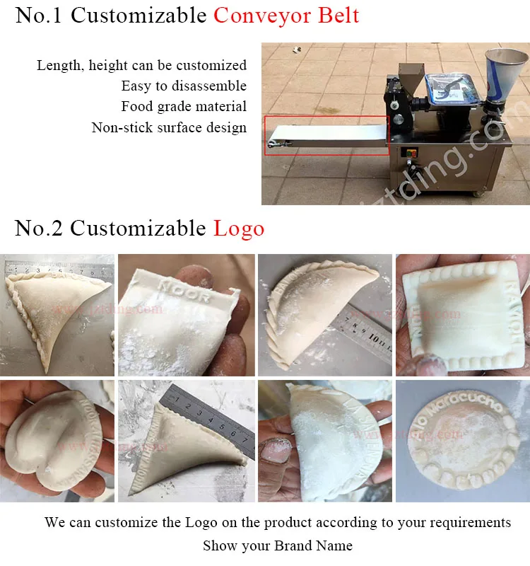 The operation of the machine is very simple. You only need to prepare the dough and fillings in advance, and the machine can automatically start production, with high output and low consumption. And you can adjust the amount of filling and the thickness of the dough to make the weight you want. After adjustment, the size of the products made by the machine is consistent. The finished product can be used for frying, boiling, frying, etc., and a Logo can be added to the product to help you customize a unique product.